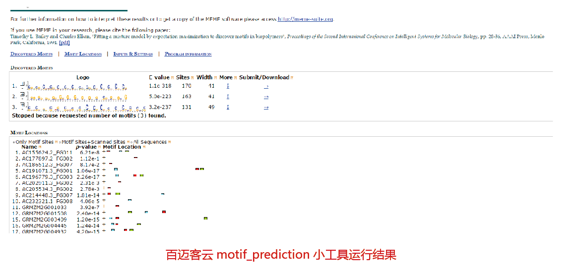 該步驟中的motif序列提取可調用部署于百邁客云的motif_prediction小工具來完成。