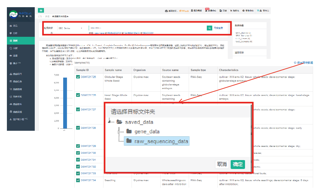 針對植物基因組學研究,百邁客云可通過BMKCloud_數據庫模塊向用戶提供海量的植物高通量測序公共數據,借助公共數據,可大幅降低研究成本,提升研究層次。數據檢索、下載、保存均在圖形化界面下完成,避免了傳統模式中,須在命令行界面下進行數據下載、格式轉換等一系列繁瑣操作的限制,完全適用于國內生信0基礎的用戶。